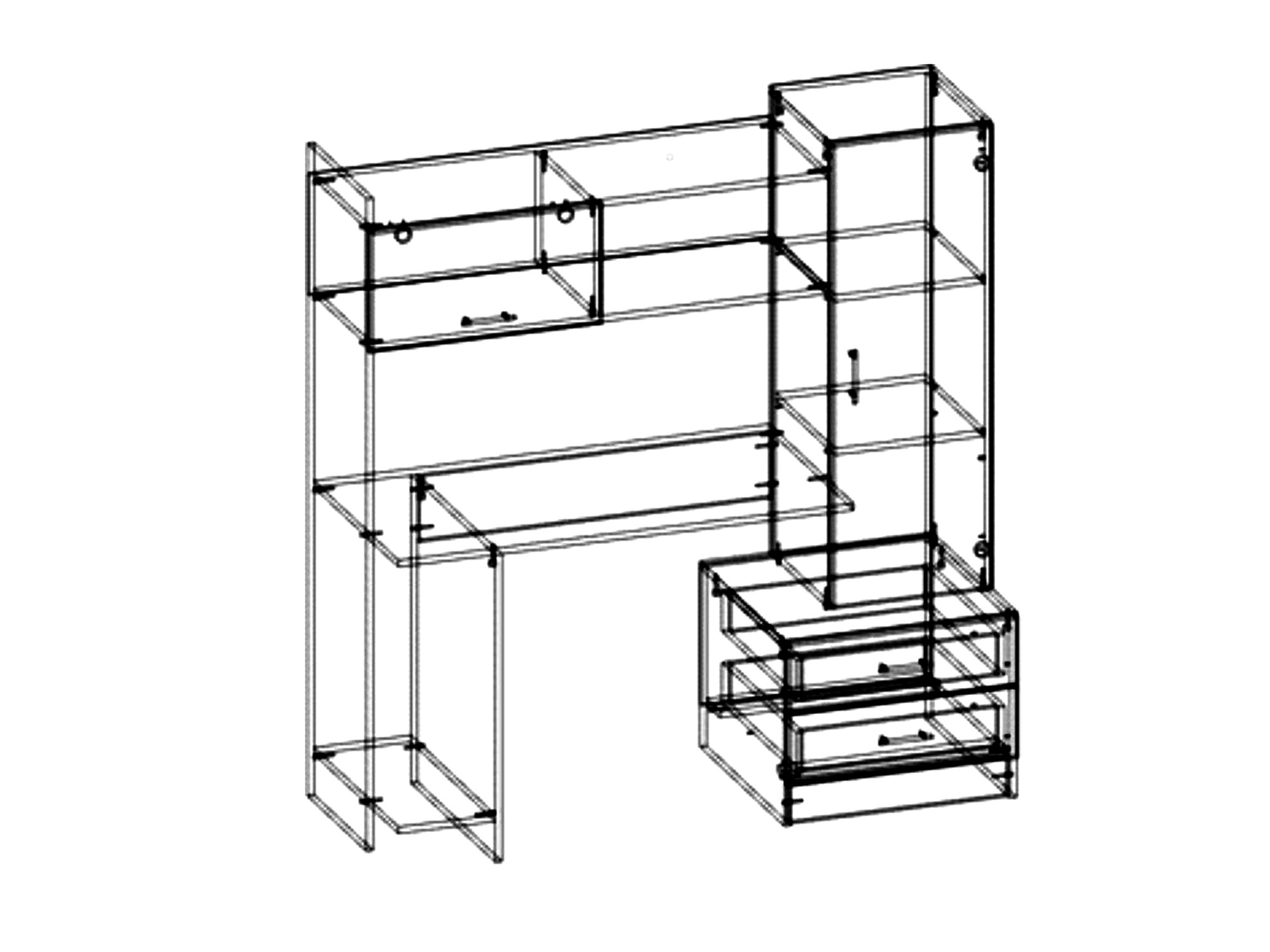 • Ширина 1534 мм x Глубина 570 мм х Высота 1600 мм